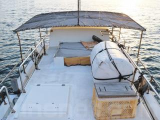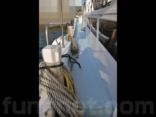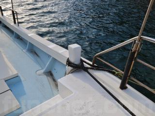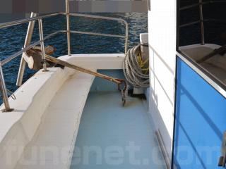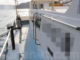 ◆取材時の船齢は約28歳ですがデッキは硬くしっかりしています。また、デッキのノンスリップの状態、ブルワークも航行に影響があるような大きな損傷などが無い様に見受けられました。過去に艤装を取り外したような穴やFRP加工も少なくストックに近い状態だと思われます。