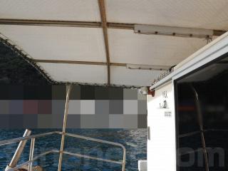 ◆アフトデッキ(トモ)には数人が腰掛けられるような構造になっています。また、オーニングも備わっています。なお、アフトデッキ側から客室に入る事が可能です。
