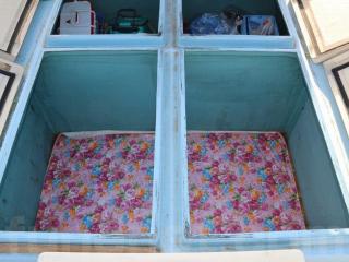 ◆操船部の前にはカディ(小部屋)があり、大人数人が入れます。(写真No,43~48)この部屋は明り取り窓もあります。またその階下にも同床面積の部屋がありますので、収納などにも重宝しそうです。なお、この階下の部屋からエンジンルームにもアクセス可能です。(写真No,49~59)