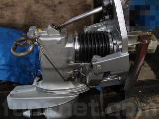◆船体から取り外した物をプロの手で分解掃除し、ラバープロテクション(ベローズ)やオイル、シール類は全て交換し、トランサムプレートの一部が電蝕で侵されていたのでパテ補修をしたうえで全体を塗装した整備済みのアウトドライブです。