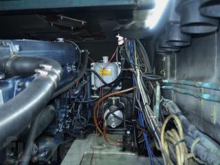 ◆エンジンはヤマハ製過給機付き直列6気筒ディーゼルエンジン、MD859KUH(型式:N15 連続最大出力380PS/2,200rpm 最大470馬力)を搭載しています。なお、取材時のアワーメーターは約6254時間でしたが、ワンオーナー艇では無いのでこの数字の信憑性は定かではありません。エンジンはかかりつけの業者さんに依頼されて定期的にメンテナンスをされていらっしゃるそうです。また、直近では6238時間の際にエンジンオイル交換をされていらっしゃいます。