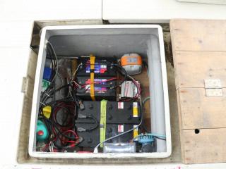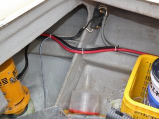 ◆この艇は3系統の電気回路があります。すなわちバッテリーは6個載っていますが、イケスエアポンプなどの回路用のバッテリーは1年程度前に交換されたそうです。またエンジン始動用を含む他の4つのバッテリーもまだ問題無く使えるとの事でした。