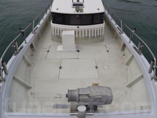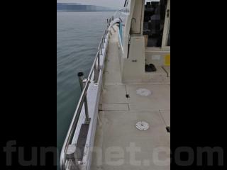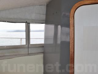 ◆この船体は大きめのブリッジ、広い客室が備わっているのが特徴です。船体は船齢なりの経年劣化は見られるものの艇全体的に航行に支障があるような大きな損傷なども無いように見受けられました。船齢24歳(取材時)としてはハルの傷も少なく全体的に綺麗な個体ではないかと思います。