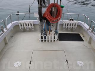 ◆フロントデッキ(オモテ)にはホースビットを備え、先端には補修痕がありますが航行や使用に大きく問題は無いと思います。また、バウからアフトデッキにかけてのレール類もしっかりしていました。なお、バウのアンカーリールは動作確認も致しました。(動画有り)