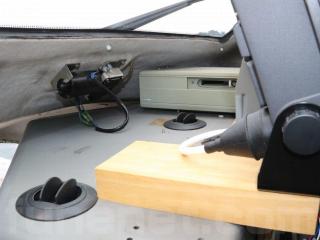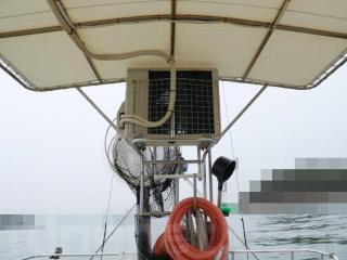 ◆フロントデッキ右舷側サブタを開けるとソナーの振動子が現れます。振動子部も外観上特に問題は無いように見受けられました。また、ソナーも取材時には快調に動作していました。
