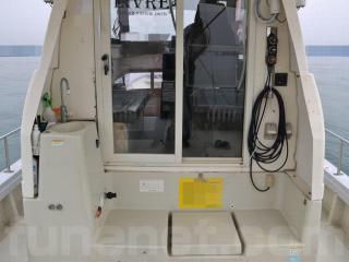 ◆この艇のオーナー様は業務用として乗っていらっしゃるそうですが、この艇はサイズアップの為、出品させていただく事になりました。船体はヤマハで造られた平成8年進水の個体で、船体銘板(コーションプレート)には「DX-39J-1C-SD」と打刻されているようです。このモデルは大きめのブリッジ、広い客室が備わっているのが特徴です。