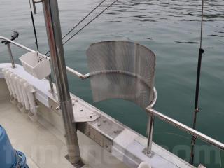 ◆デッキ最後尾には小用の為のガードがあります。トイレも装備された艇ですが、これも重宝しそうです。なお左舷側には舵やプロペラを覗ける点検口があります。