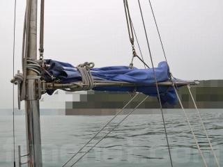 ◆スパンカーはステンレスの丈夫そうな物(別注品?)が備わっています。構造はナカセンと同じようになっているので「ナカセンタイプ」と表記しましたが、帆は実際にナカセンの物だそうです。フレーム、帆共に問題なく使えるとの事でした。