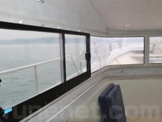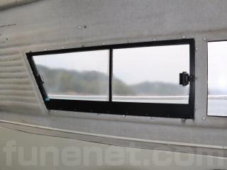 ◆コクピット・キャビン内は動画にも収めていますので是非ご覧下さい。コクピットの両窓及び後方の窓はスライドで開閉可能で天井にもハッチがあるので風通しも良さそうです。なお、キャプテンシートからの見切りも良好で操船し易そうな印象を受けました。