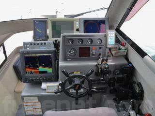 ◆Vetus製のバウスラスターが装備され、コクピット及びセカンドステーションでも操作できるようになっています。また、フラップも装備されていますので着岸から航行、釣りポイントでの船体姿勢制御が可能です。