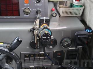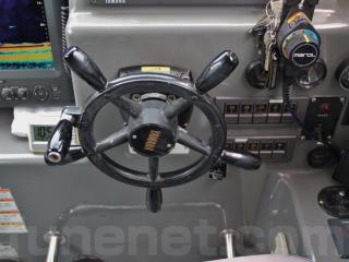 ◆操舵機器はマロール製で主ヘルムハンドルと舵リモコンで行えます。なお、セカンドステーションに3連リモコンも装備されており、同じくマロール製の潮立て装置も付いていますのでスパンカーとの併用で快適な釣りが楽しめる仕様です。
