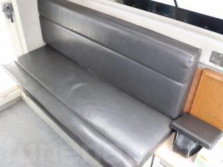 ◆コクピット後方の両舷にはベンチシートが設置され、左舷側シートの背もたれの裏にはロッドホルダーが仕込まれており、これも重宝しそうです。また座面下は収納スペースになっています。なお、右舷ベンチシート下はDC-ACインバーターなどが仕込まれており、このインバーターでエアコンや電子レンジを動かしています。