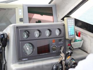 ◆エンジンはヤマハ製過給機付き直列6気筒ディーゼルエンジン、MD859KUH(型式:N15 連続最大出力380PS/2,200rpm 最大470馬力)を搭載しています。なお、取材時のアワーメーターは約6254時間でしたが、ワンオーナー艇では無いのでこの数字の信憑性は定かではありません。艇はプレーニングも早く、プロペラのマッチングも良さそうに感じました。なお、最高速は34~35ノット程度出ました。また、通常の巡行は20~25ノット程度でされていらっしゃるそうです。