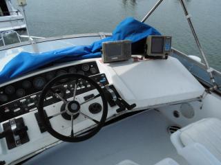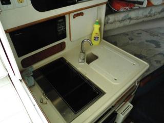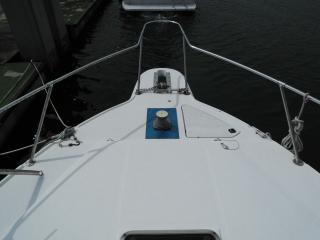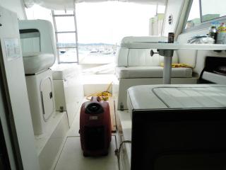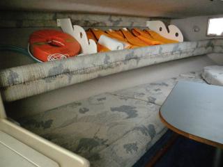 船体・室内の状態は良いほうだと思います。室内はとても広々としていて、ギャレーには清水・シンク・電子レンジ・電気コンロ・冷蔵庫等の装備があり、前にはトイレルームもあります。バウバースも広く、大人3人が横になれるほどのスペースがありますのでご家族やお友達を呼んでBBQやパーティにももってこいの艇です。このままの状態ではとてももったいない様に感じました。