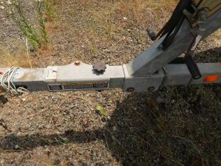 ◆トレーラー本体の全長は約5.8m、全幅は約2.4mです。なお、このトレーラーはヒッチカプラー部が折りたためる構造になっているようです。折りたたむと約50㎝程全長は短くなるようです。