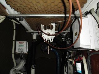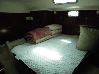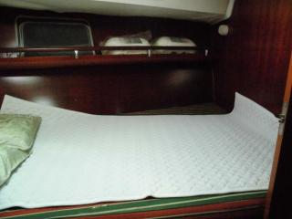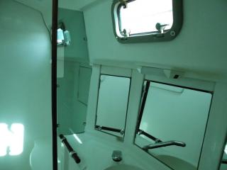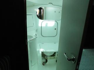 【アフトキャビン】右舷側のギャレーを通り過ぎるとアフトキャビンに入ります。このアフトキャビンがオーナーズルームとして使用されていました。エアコンやオーナー様専用の手動式マリントイレが装備されています。温水シャワーも使えます。