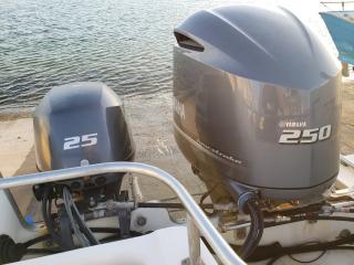 潮立て用で使用している子機エンジン(ヤマハ4スト25PS)も付いています。