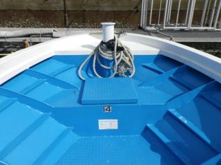 ◆アルミ軽合金の作業船です、最高約40ノットの速力です、作業性はよく荷物を積んでも立ち上がりの良い船底形状です。