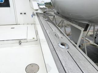 デッキ上は年数の割にしっかりとしています。後部のチーク部分も状態は良いです 埋め込みクリートもスマートに付いています。