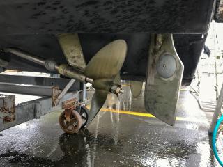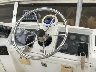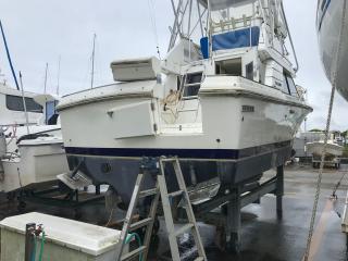 取材時は上架状態での取材でしたので、船ネットドットコムでは走行状態の確認、エンジン始動の確認、航海計器の作動確認等は一切行っておりません。ご見学の際にはご試乗頂き、全ての事項をご確認の上、ご購入をお決め頂きますようお願い致します。