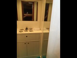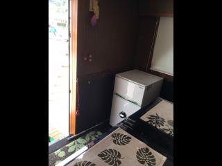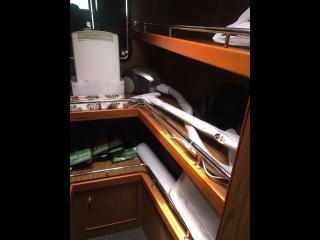 ギャレーに冷蔵庫がセットされていたそうですが、小さいので外して物入れにされています。