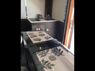 波に強く叩かないのでクルージングには最適です。エアコンの効きも良く快適なサロンでお寛ぎ下さい。
