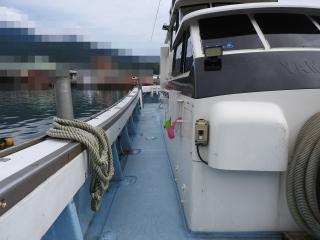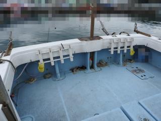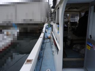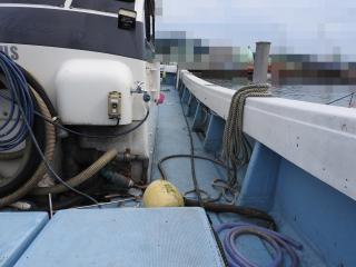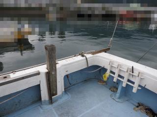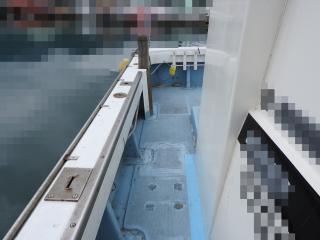 ◆艫のレール左舷にはしごをつけていますが、レールに傷をつけた状態です、取り外しレールの修理が必要です。