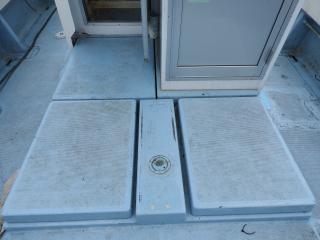 ◆艫のデッキも問題なく固い状態です、キャビン後ろに個室のトイレが有りますが、現在は使用されていないようです、手入れが必要と思われます。