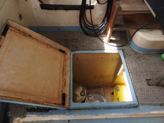 ◆キャビン前のイケスは大型です3間あります、その前のイケスは氷などを入れるのに利用できそうです、栓は除けています。