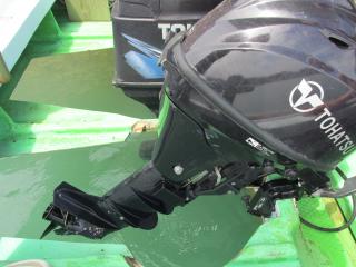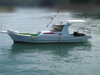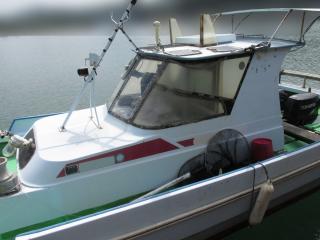 漁船タイプですが、取り回しの良い船外機搭載艇です。8馬力子機エンジンも付いてますのでトローリングもGOODです。
