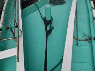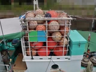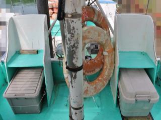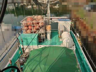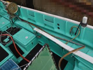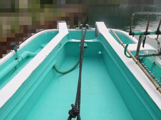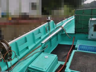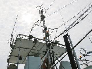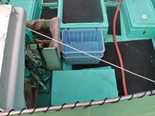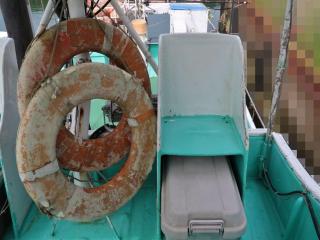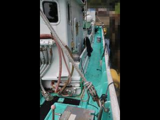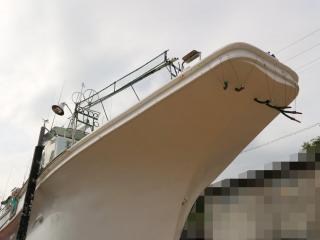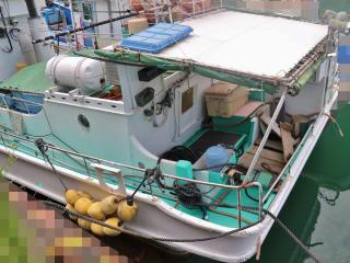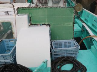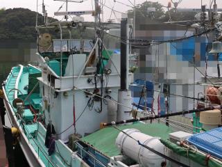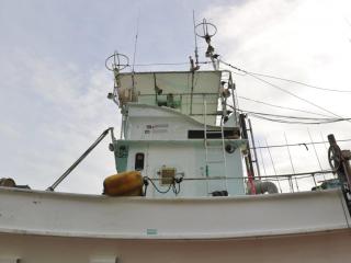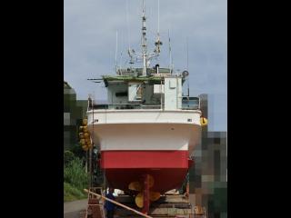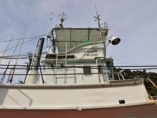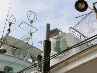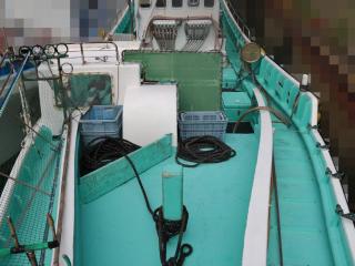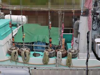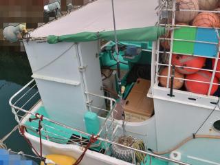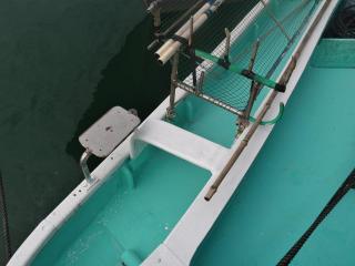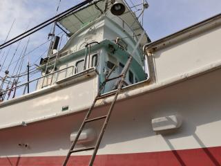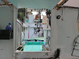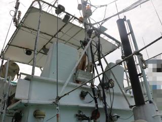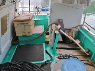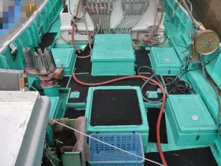 ◆船の型としてはオモテで鰹の一本釣りができ、なおかつ鮪はえ縄漁もできるような漁労機器が備わっています。なお、船首にカツオ漁で使う散水ノズルが装備されていますが、ポンプが故障しているとの事です。その他ははえ縄に使う設備は特に大きく問題は無いとの事です。
