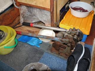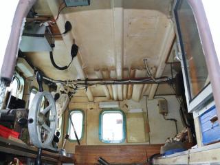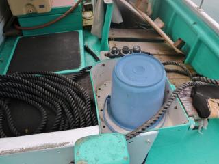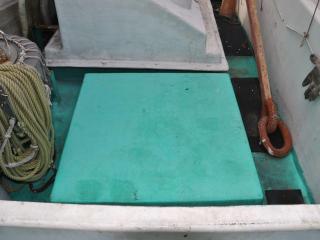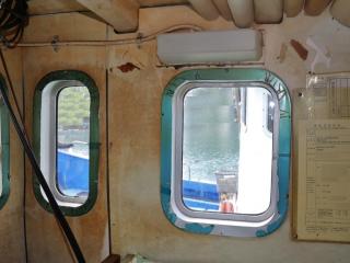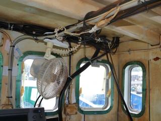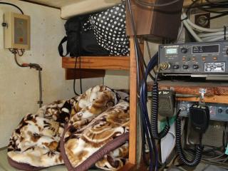 ◆ブリッジ内には左舷側のハッチから入る事ができます。ハッチの前には電動アンカーウィンチが備わっています。ブリッジ内には小型1種船として必要な航行機器類が備わっていますが、衛星電話はご商売を止められた時点で解約され、本体も取り外されています。なお、ここが船頭室でもあり、ベッドは2つあります。