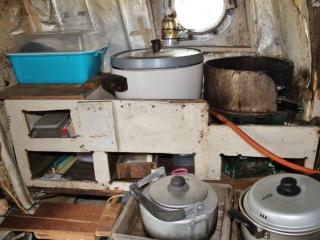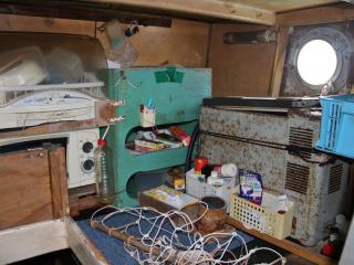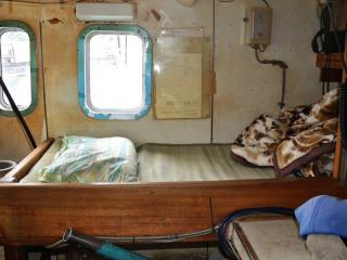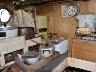◆トモからブリッジ向き(機械場後方)に厨房に入れるドアがあり、その階下にクルーのハウスがあります。ハウスのベッドは4つです。なお、ハウス前方から機械場に入れるようになっています。