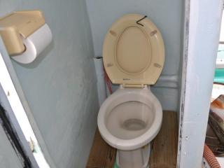 ◆トモの右舷側にはトイレが備わっています。また、トモにも3連リモコンが備わっており操船可能です。