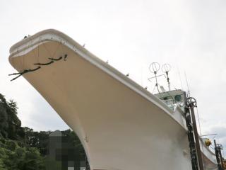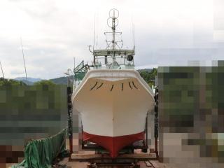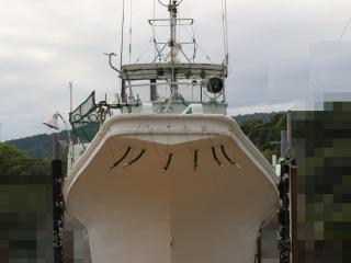 ◆船体は戎井造船所で造られた船です。船首はいわゆる鰹一本釣り漁船の形状をした、船底は本キールの漁船です。