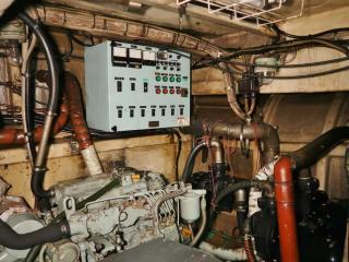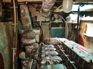 ◆主機はヤンマー製のインタークーラー・ターボ付き直列6気筒ディーゼルエンジン、6KX-GT(連続最大出力675PS/2,130rpm)を搭載しています。また、補機はヤンマー製の直列4気筒ディーゼルエンジン、4JHL-TNを1基搭載し、交流発電機に直結されています。発電機の出力は20KVAとの事です。