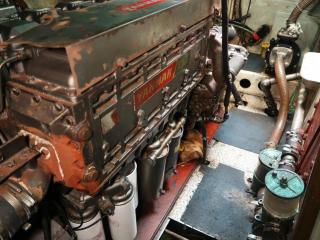◆主機はヤンマー製のインタークーラー・ターボ付き直列6気筒ディーゼルエンジン、6KX-GT(連続最大出力675PS/2,130rpm)を搭載しています。オーナー様は通常8~9ノットの巡行でご商売をされてこられたようですが、11ノット程度の巡行は可能との事でした。