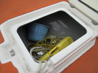 ウェークタワー、ビミニトップ、マリントイレ(手動式)、いけす、アンカーウィンチ、アンカー、スウィングステップ、スィミングラダー等が装備されています。