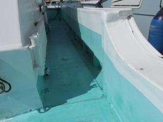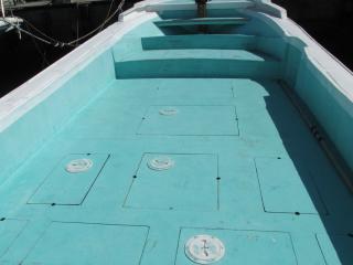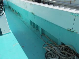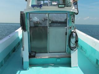 スピードも速く、フラットで広いデッキが特徴です。また、低燃費ですので、遊漁船にも向いています。