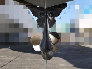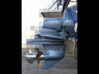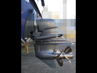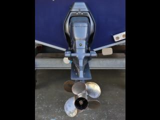 ◆アフトドライブはヤマハ製SXの二重反転プロペラが装備されているモデルで効率が良く、コモンレールエンジンと相まって燃費や船速もシングルプロペラモデルよりも良いと思われます。また、二重反転の為、プロペラの回転トルクが相殺されて航行時の艇の傾きも抑えられているでしょう。取材時は油圧ホース、パッキン類からのオイル漏れなどは無いように見受けられ、キャビテーションプレート、プロペラも問題無いように見受けられました。