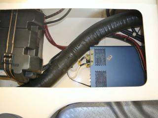 ◆コクピットのキャプテンシート、また、窓ガラスにはカーテンがあり、日頃、日光が入らないように留意されている為、後部のベンチシートも破れなども無く綺麗な状態問題無いように見受けられました。なお、ベンチシートには3~4人程度座れそうです。また、ベンチシート下には2KWのDC-ACインバーターが備わっています。
