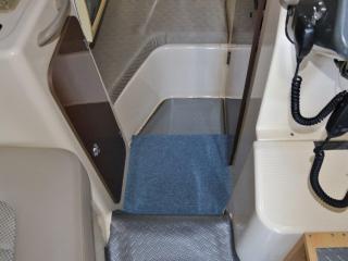 ◆エンジンは当時、プレジャーボート向け国産エンジン初の「コモンレールシステム」を採用したトヨタ製過給機付きDOHC直列4気筒直噴ディーゼルエンジンM1KD-V(連続最大出力170PS/3,300rpm)を搭載しています。また、取材時のエンジンアワーメーターは約982時間でした。なお、取材時に試乗はさせていただいておりませんが最高速は30ノット程度出ると推測されます。
