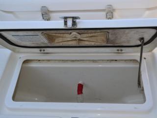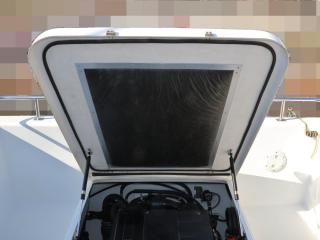 ◆リアドア下には循環式のイケスも備わっています、また、アフトデッキ両舷には電動リール電源もあります。