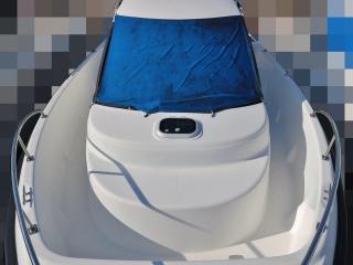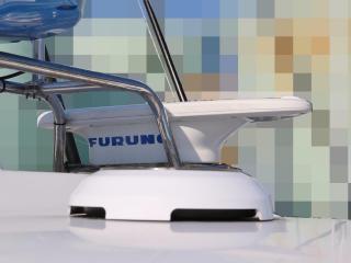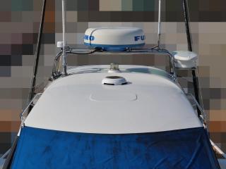 ◆バウには電動アンカーウィンチが装備され、アンカーは2本付属します。また、フロントウィンドウカバーも付属します。ルーフの上にはしっかりしたステンレスのレーダーアーチが備わっており、レーダーアンテナ、サテライトコンパスアンテナ、GPSアンテナなどが取り付けられています。