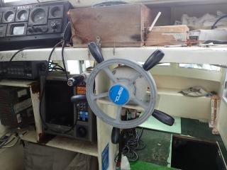 ◆回転窓◆舵リモコン(マロール)◆三連リモコン(マロール)◆コンパス ◆GPS(FURUNO GP-3100)◆漁業無線(コーデン DS-30)◆魚探 (本多電子 HE-757)