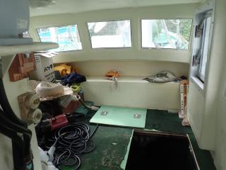 ●操船席前の船室床下からでもエンジンルームへの出入りができます。また、船室も物を置いておく、スペースは十分確保しております。