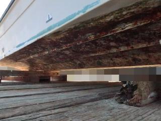 ◆船底塗装歴はありますが、現在上架して船底塗料を剥がした状態です。なお、船底も航行に影響があるような損傷なども無い様に見受けられました。現在も陸所保管されていますので、ご見学に来ていただければ陸上でしっかり確認していただけます。