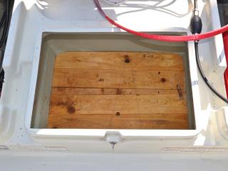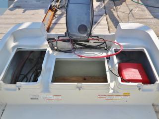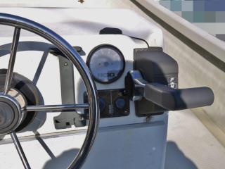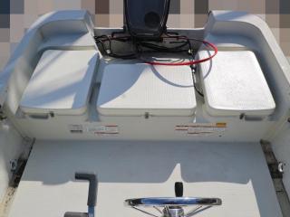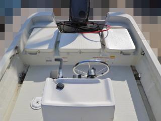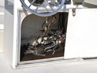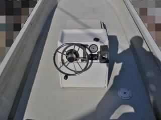 ◆この艇はトランサム寄りにコンソールがあり、油圧のヘルムハンドルで操船可能です。コンソールにはタコメーター、エンジンリモコンが付いていますが、艇は陸上保管状態ですので動作確認はしておりません。オーナー様によりますと問題無いとの事です。