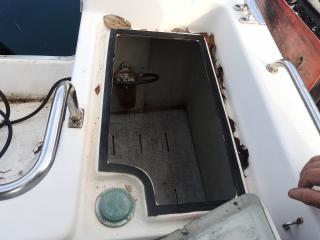 燃料タンクはステンレス製です、給入口は左舷ハツチのもとにあります。