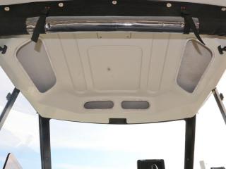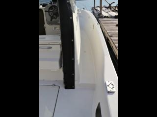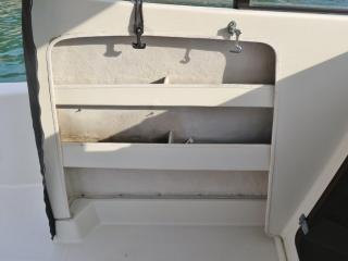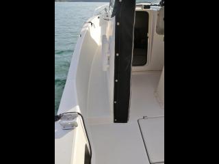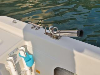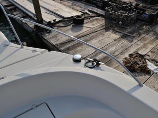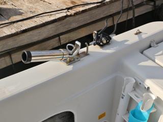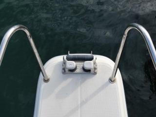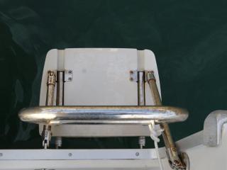 ◆フロントデッキ・バウレールやトランサムのステップ&ラダーもしっかりしており特に問題無いように見受けられました。また、アフトデッキにはロッドホルダーも装備されています。